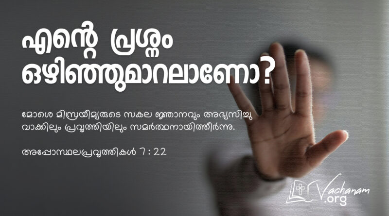 Read Moreവചനം അപ്പോസ്ഥലപ്രവൃത്തികള് 7 : 22 മോശെ മിസ്രയീമ്യരുടെ സകല ജ്ഞാനവും അഭ്യസിച്ചു വാക്കിലും പ്രവൃത്തിയിലും സമർത്ഥനായിത്തീർന്നു. നിരീക്ഷണം ആദിമ സഭയിൽ അപ്പോസ്ഥലന്മാർ നിയമിച്ച ആദ്യത്തെ ഏഴ്